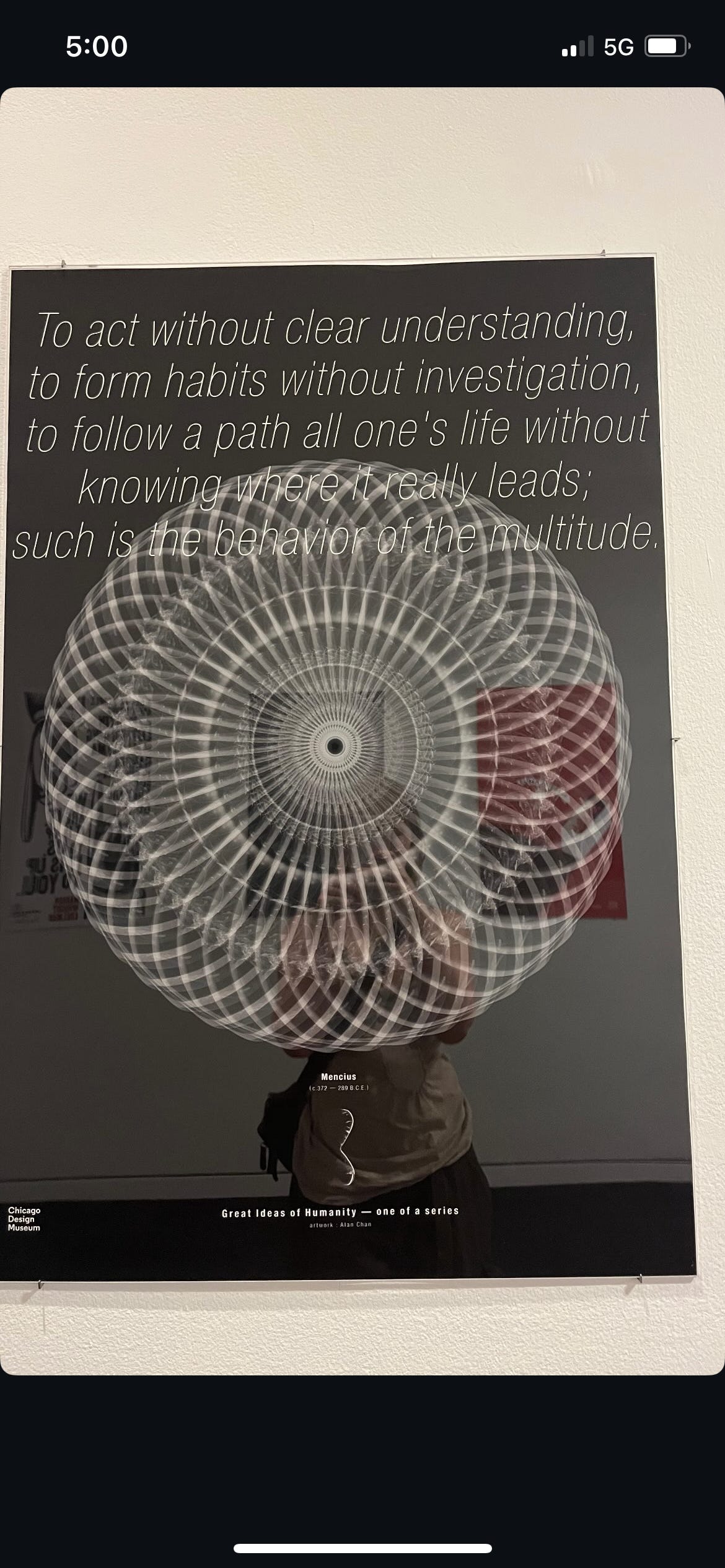 This quote by Mencius (372-289 BCE) and the background of the spirograph made me think of spirals. Also, it made me think two things besides the spiral thing. One— possibly Mencius was bitter and upset by the ignorance of the men of his time, who battle on full in their efforts, but, lacking precision in their objective, perpetually miss their goal and so perpetually bother him. Two— a more charitable interpretation that the variety and diversity of life (the multitudes) can only be traced out with a healthy sense of pointless playing.
